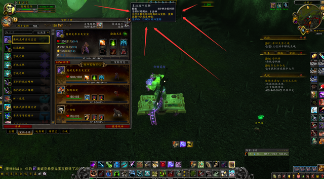为什么我推荐龙类宠物呢?因为这个奥妮克希亚宝宝。他的二技能是可以加血的,三技能是一个一轮无敌并且带飞行技能的。