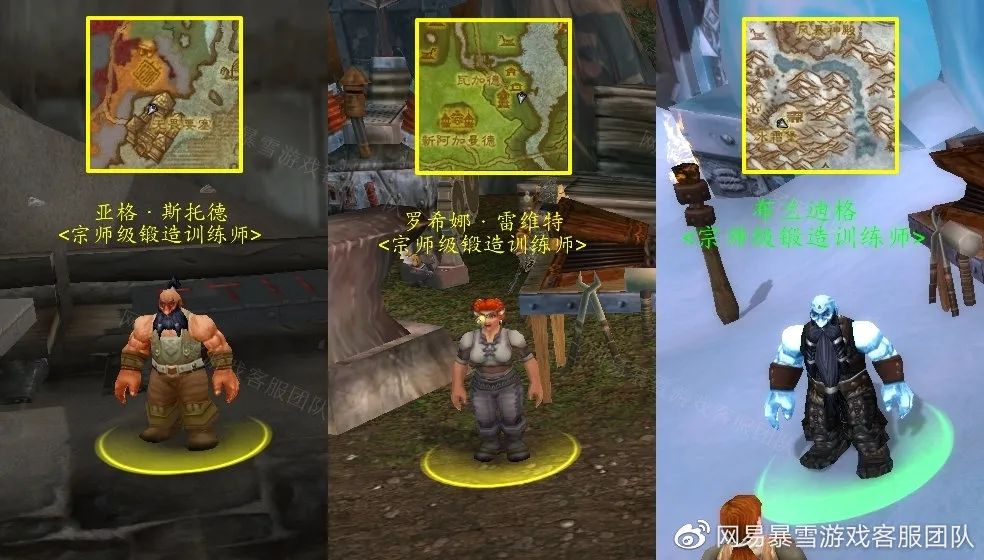 联盟可以前往北风苔原的无畏要塞找“亚格·斯托德”,或者前往嚎风峡湾的瓦加德找“罗希娜·雷维特”,以及前往风暴峭壁的冰霜堡找“布兰迪格”将锻造专业提升至宗师级。