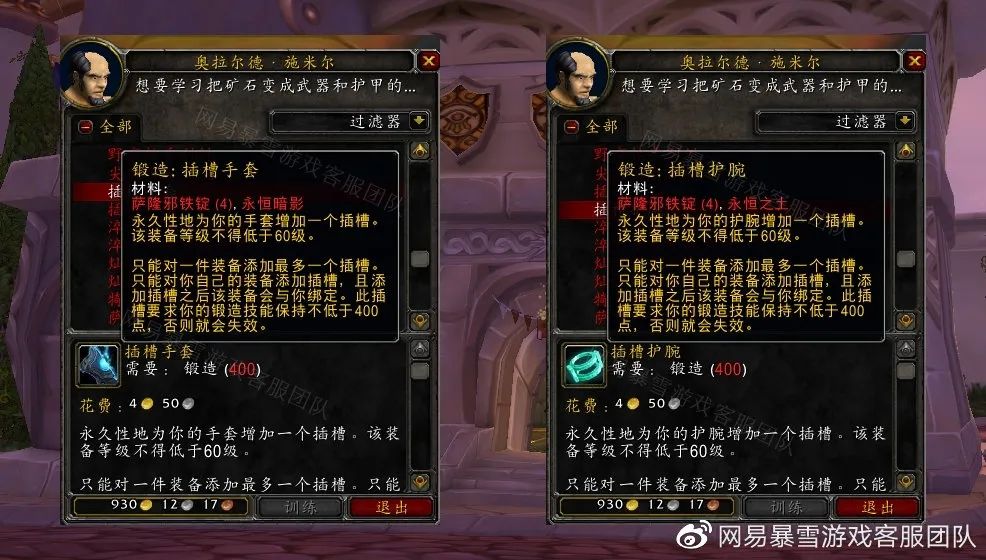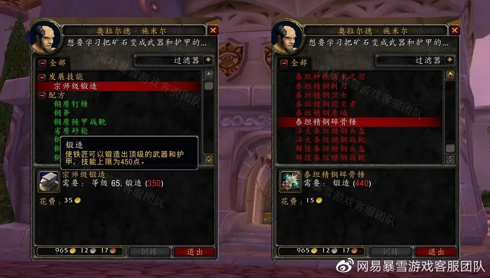 在开启450上限后就可以在上述训练师处学习到多种锻造配方提升技能。