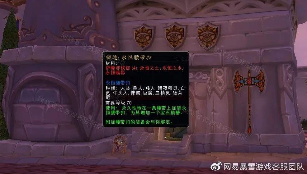 在巫妖王之怒版本中锻造最大的亮点就是可以制造所有玩家给腰带打孔的物品“永恒腰带扣”(可交易),这是强化角色能力必不可少的。