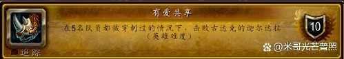 3.有爱共享成就做法:这是尾王的一个成就,BOSS有一个技能会变身成为犀牛形态,随机点名一个坦克以外的玩家把它挂在犀牛角上,全队都挂在过犀牛角上即可完成。需要一名副坦克接BOSS,让主坦克有可能被犀牛技能打到。
