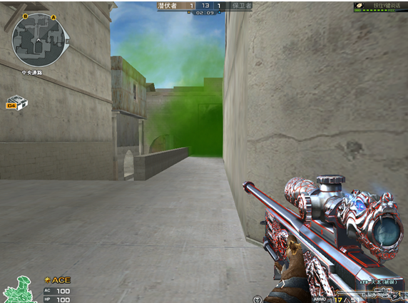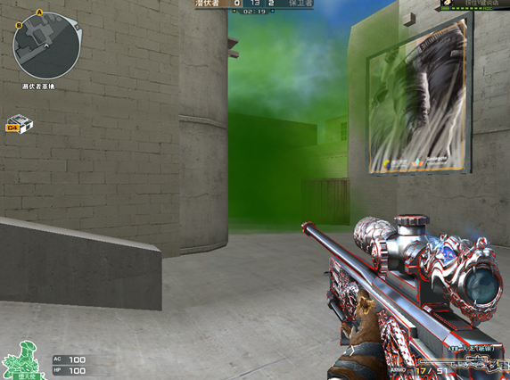 位置刚刚好,潜伏者复活点的狙击手完全看不到你的存在!同时,小长假在这里提醒大家如果你是这个狙击手,一旦有这种烟雾弹过来一定要提醒在中路的队友注意A门,自己要迅速转点,因为很有可能保卫者从烟雾中冲过来请你吃一盘子弹大餐!