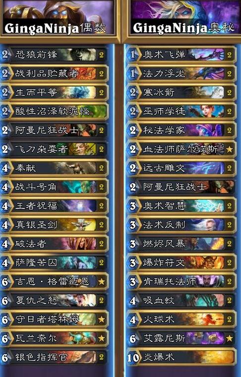 《炉石传说》亚服HCT第一赛季预选赛GingaNinja卡组推荐