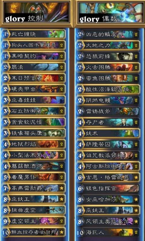 glory是炉石传说实力非常强的一名选手,在亚服HCT赛事期间,该大神为玩家带来新的卡组搭配,例如非常火的控制、偶数等等。那么这些卡组怎么搭配呢?玩法是什么?下面就跟小编一起来看看吧。