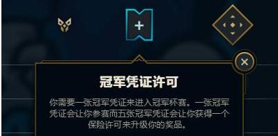 玩家需要一张冠军凭证来进入冠军杯死啊。一张冠军凭证会让你参赛而五张冠军凭证会让你获得一个保险许可来升级你的奖品。