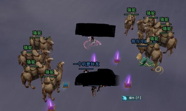 又是一个很有趣的道具,一次召唤5只骆驼,团队一人一只,跑速等于黄龙,但是天策骑骆驼不能施展马上技能,天策玩家慎重。不过也是跑路赶路的一个很好的工具。