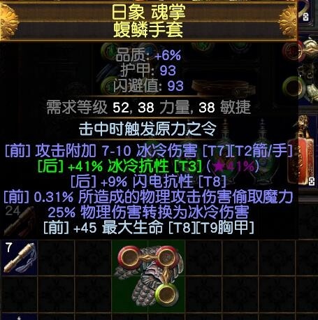 大金字塔boss很容易出这种25%物转元素的手套,我自己70级前刷出3件,一直用到85级。