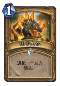 1费进化一个友方随从,好处在于灵活,并且是1费,进化目标也没有限制,对于有神恩术的我们来说,只要能强化场面,手牌不在乎,再说到进化的效果,有用的很多,其中还有一个很关键的剧毒,对于我们有强化英雄技能,报告贼多的骑士来说,缺的就是解场能力,而这仅仅是好处之一,进化还能提供+3攻击力和+3生命值等等,都是非常强大属性,根据场面情况的不同,需求自然不同,这张卡的多样性就决定了它的不平庸。