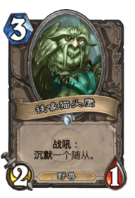 起手找低费随从,但是没其他1费、3费随从情况,不留叫嚣、老兵这种需要配合的卡,如果打术士,那么猫头鹰必留一只(魔块术有魔块、男仆,偶数术有暮光龙)都需要沉默解决。如果打德鲁伊,必留虚空撕裂者,对付传播瘟疫。只要确保前期有生物下,场面不弱势就OK,这就是起手的工作,至于后续,那就得依靠抽牌了。