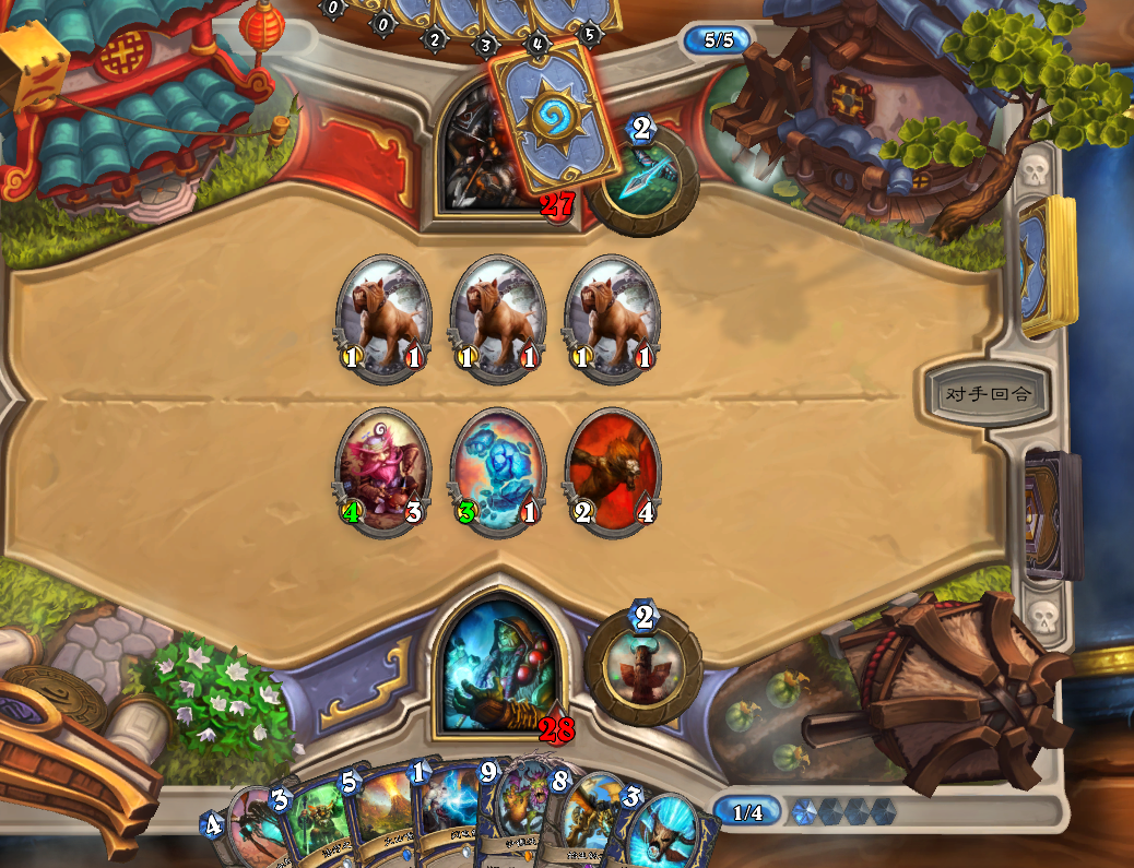 另一方面,我也尝试过很多其他卡牌的加入,比如说女巫,可以全场打3,但缺点就是费用太高,面对快攻很难苟活到8费,再者就是这玩意后期容易让手牌爆满,不利于沙德沃克的回收!