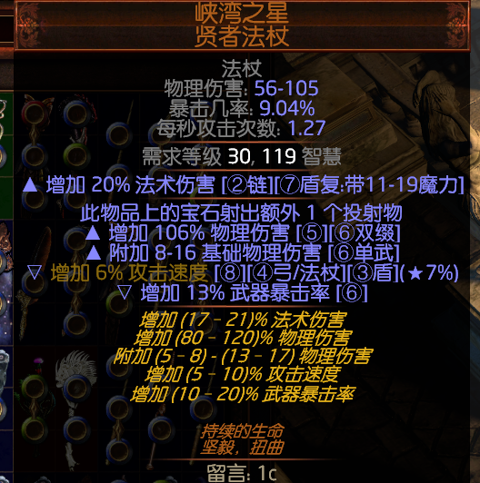 攻击和法术的基础暴击率是单独计算的——攻击基础暴击率看武器,法术基础暴击率看技能石。所以也不是相互影响的。举个简单例子:我用这个法杖在释放火球。那么你的默认攻击暴击率为9.04%,但是火球暴击率仍然是6%的基础暴击率。哪怕你是在用这个法杖释放火球没错。