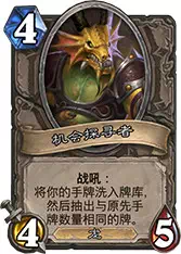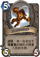 这张卡随机给一张荣誉室的卡,荣誉室的卡大多比较超模,给女王,螺丝这些卡便转到很多,即便给一些垃圾卡,例如冰枪术,鹦鹉这些卡,5费5-5的身材也没有亏太多,所以这张卡的抓位也十分靠前。