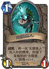 这两张卡对于这些卡来说是较弱的两张,首先静滞飞龙费用太高,上场之后十分亏节奏,即便复活之后难以抢回节奏,无限鱼人成型太慢,而且竞技场过牌太慢,很难发挥无限鱼人的效果。