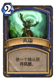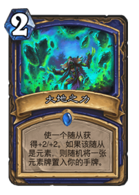 使随从获得+2/2,可以配合风怒一起使用,打出4点的爆发,也能buff随从稳固场面,而且buff元素的话还能获得一张额外元素卡,有补牌能力,而我们的元素是有凤凰、火元素、奥拉基等,配合也可以有的,经常是能赚的,但是大家也不必拘泥于元素,就当成2/2buff用嘛,给元素卡随缘就好。