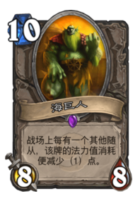同样是匹配我们铺场思路的一张卡,在我们拥有足够的场面以后,当然对手也会有一定的场面,这时候海巨人就可以依靠场上随从总数获得相应减费,以低费入场,稳固场面,对手一旦处理不掉,那就是爆炸输出。