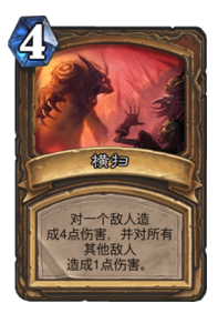 快攻卡组,也许不适合带横扫,带紫罗兰这种生物会比较好?然而环境往往会决定我们的构筑,包括骑士在内众多的快攻的存在让我们不得不带一张返场卡,而即便我们场面优势,这张卡也能用于抢血,怎么都不会卡手。