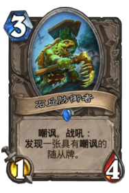 不管对阵快攻还是控制卡组,都有不错的效果,对阵快攻1/4可以抵挡一定的伤害,找的嘲讽卡中后期也可以继续扛伤害,而对阵控制卡组则可以全力找大号的嘲讽,比如巫妖王这类型的,为我们增强大后期能力。