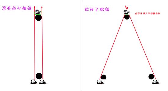不错,就是本期要来讲解的枪线。什么是枪线呢?就是你和你的队友分开站位,对敌人形成了夹角,这样可以有效的缩小敌人的掩体可遮挡面积。下面给出一张示意图供大家理解。
