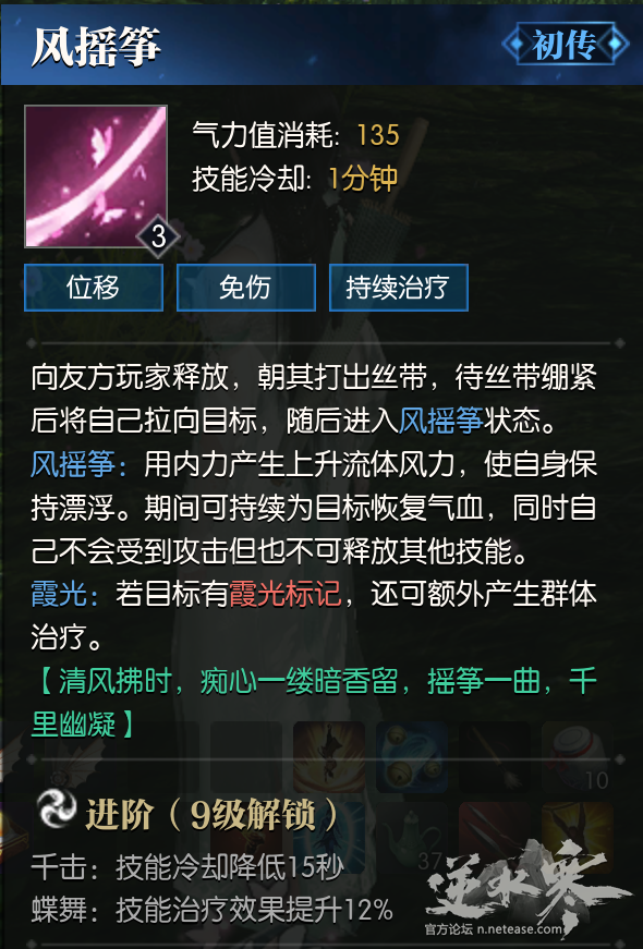 解读:会不会用风摇筝是一个PVP奶妈是否进阶的一个重要标志。风摇筝的特性请利用好: