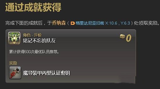 通过成就获得坐骑魔导装甲丙型,完成铭记不忘的队友,需要累计获得500次最优队员推荐。