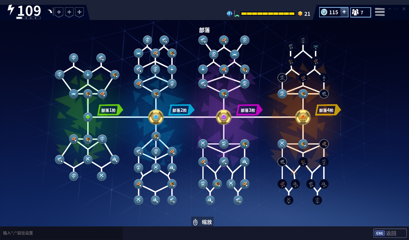 当初始配备的技能点使用完毕,就需要去打部落模式获取新的技能点以及其他的奖励。