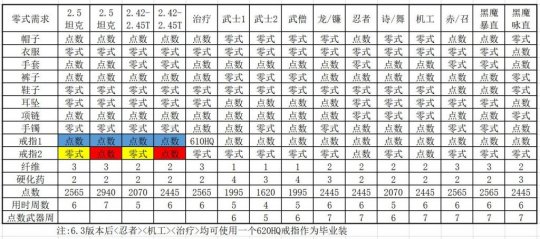 零式需求、点数毕业周数、纤维、首饰硬化药统计: