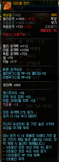 攻击时100秒内产生以下效果(最大叠加1次,冷却时间10秒,装备解除失效)