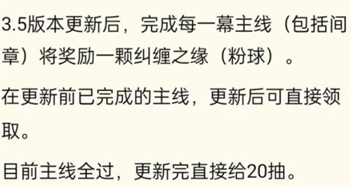 4、玩家在3.5版本之前,可以完成全部主线,然后选择去更新,就可以获得20抽。