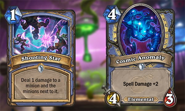 在稍早之前,法术的两张卡也是相当的强:1费普通法术,对1个随从和其相邻的随从造成1点伤害;4费4/3随从,元素,法伤+2。