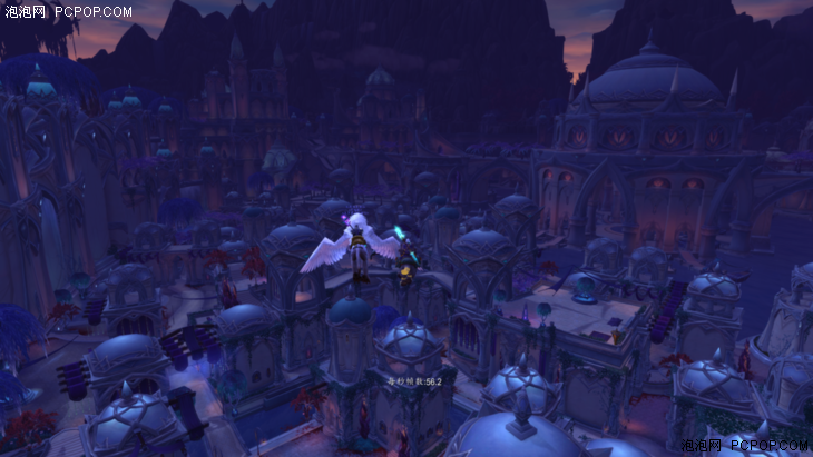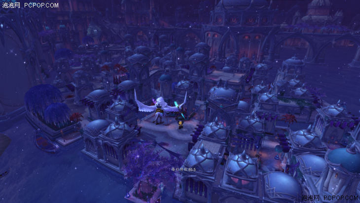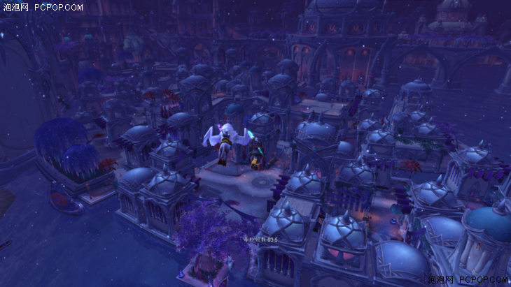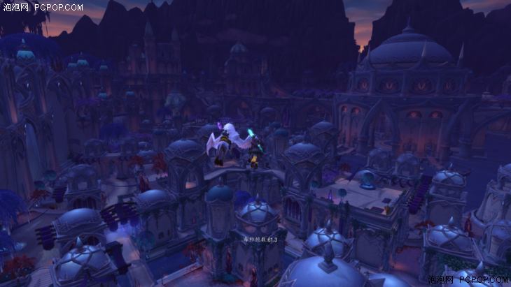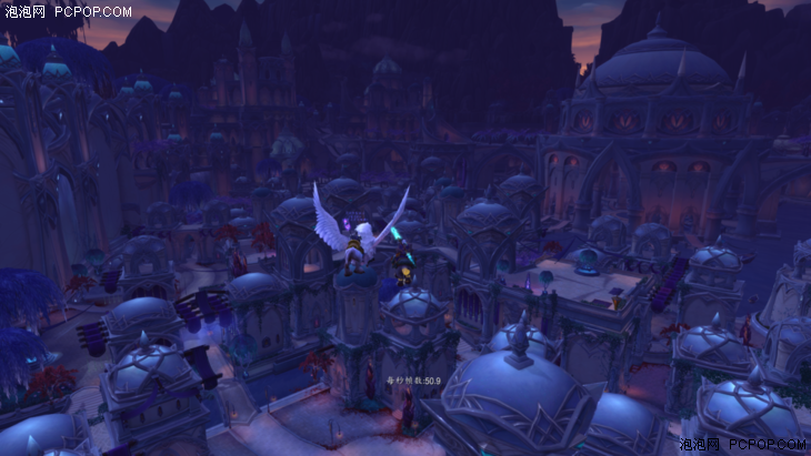 在实际测试环节中,我们将游戏画面统一设置为2560×1440,特效10,4XMSAA-CMAA,三线性过滤,多重采样测试及降低输入延迟开启。分别选取达拉然苏斯平台下方、苏拉玛平民区上空以及苏拉玛贵族区暮光酒庄三个测试地点。