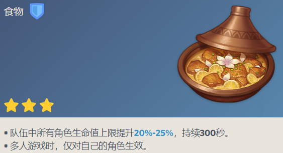 队伍中所有角色生命值上限提升20%-25%,持续300秒。