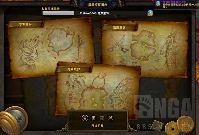 每周收集进度:在顶端有个进度条,总共要收集40000艾泽里特。而当你完成这个进度条之后,就可以获得进度条上显示的奖励。这个进度条奖励,每周一次。