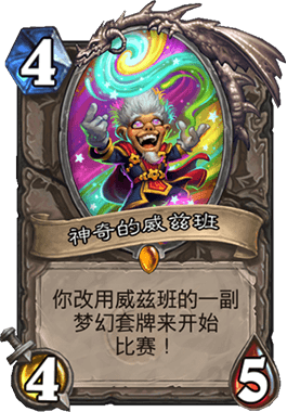 威兹班很适合那些拿动物园打到低保,却没有其他能玩的成型卡组的玩家。在以前这些玩家基本上就是冲到10级或5级或传说,然后只清任务玩乱斗,一般都不打天梯。现在有威兹班,他们可以多一个玩法。你合个威兹班,总比合个丛林猎人能带来更多乐趣。不过如果拿威兹班来冲天梯等级,那真是又累又慢。这卡只适合不在意分段的佛系玩家用。其实卡比较多的老玩家真的不太需要威兹班,骚套路自己就能组出好多,玩不过来。