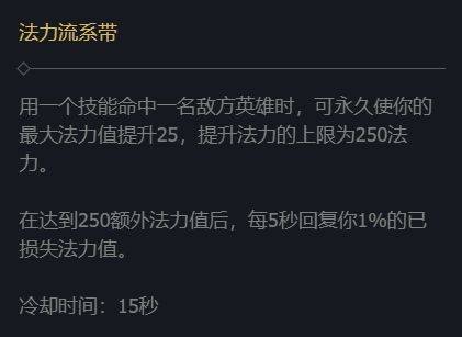 米利欧的技能蓝耗较高,法力流系带可以提高蓝量回复和上限。
