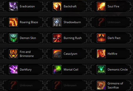 ·牺牲魔典 - (瞬发,30秒冷却时间)牺牲你的恶魔来获得恶魔力量,获得他的恶魔掌控技能,让你的法术有时会对目标 以及8码范围内的其他敌人 造成额外的( 75% 35%法术强度)点暗影伤害。持续1小时或者直到你召唤出一个恶魔宠物为止