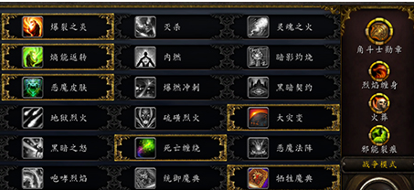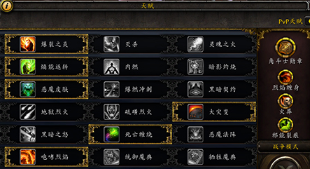 爆裂之炎+熵能反转/暗影灼烧+恶魔皮肤+大灾变+死亡缠绕+咆哮烈焰+魔火