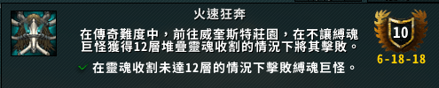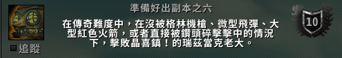 簡單說就是不能中任何技能、除了普攻白字外不能受到任何傷害,所以一定要躲好地上的紅水綠水、打斷所有的血箭。這也是DPS越快,出意外的機會越小,也就越容易解的成就,建議全技能嗜血RUSH。