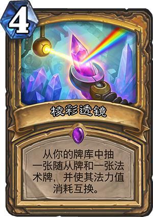圣骑士的法术,很新奇的设计,抽一张法术牌一张随从牌调换法力值。这就意味着会出现一个很有意思的现象:抽的两张卡中的高费的那张会变成一张超模卡,低费的那张会变成一张亏模卡。那么问题来了:一张超模卡+一张亏模卡的价值,是否比原本两张卡更高?其实从另一个角度看,也可以把这张卡看作是一张4费过2张卡的法术,同时还有定向检索的能力。有一种玩法是在牌库里放入放大量低费的随从和少量高费法术,这样子这卡抽过来的就是一个低费的强力法术和高费的小个子随从,不用那个随从,用那个法术就可以为自己赚到很多节奏。这张卡并不仅仅只有娱乐性,还是有一定的用处的。