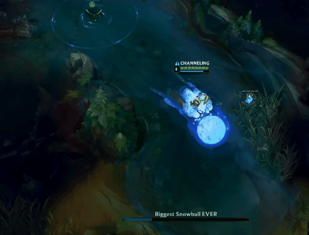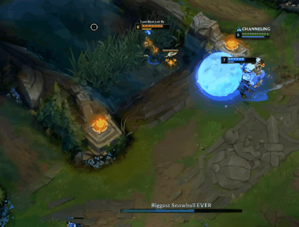 W-完全重做的技能,类似于赛恩的R,威朗普开始滚雪球,雪球会越滚越大和提高自身移速,撞到敌人可以造成伤害和击飞效果。施法过程中无法使用其他技能,最大伤害时非常高,AP加成高可以补适量的AP装备。雪球可以用来赶路,是非常实用的技能。