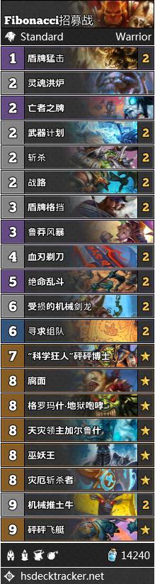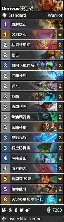 Derivus用任务战打到了传说第三,其中只带了武器计划一张新卡。与先前类似,这个牌组面对快攻表现良好,但是碰上各种玩蛋和魔块基本就是被吊打。