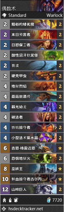 以上还不是术士的全部形态。关于魔块术消亡的传闻多少有些言过其实。Gaby就成功的使用了魔块术登顶。尽管这个形态的使用率很低,但是他在环境中的表现却很不错。5费下欢乐的发明家更可以帮助魔块术苟活到放下男仆。