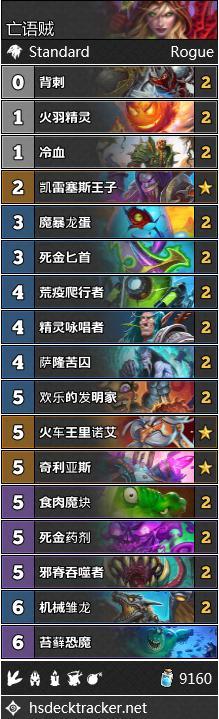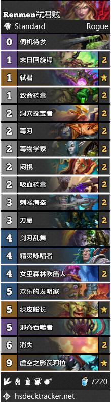 虽然兔子贼似乎没办法成为控制卡组的终结者,盗贼还是有其他反制慢速卡组的手段。弑君贼在传说高分段拥有良好的表现。Renmen用一套满编毒药学者和割喉海盗的构筑成功登顶。当然,你得往你的牌组里塞上一张吵吵才行。当然没准你还能塞上第二张。