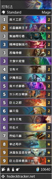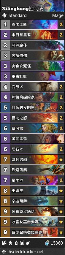 控制法总体来说表现更好,这得益于她面对除魔块术外几乎所有术士形态的优势。Xilinghung使用一套加入了星术师的高费构筑打到了传说第21。这些高费的随从使得牌组更富有攻击性,并且更好的压制对手。由于调高了曲线,热情冒险家的价值有所增高。Theo用类似的构筑打到了传说第8,去掉冰龙换上了奥术统御者,同时去掉了苦痛加入了第二张乌鸦。加入了二王子的控制法已经在女巫末期被证明有更好的表现,在砰砰计划她也同样有良好表现,尽管目前为止相关的尝试还不是太多。下面搬运的构筑是一套专门用来克制奇数贼和动物园的纯防御型配置。如果你在冲向传说的道路中碰到满地快攻的环境,这个构筑会是一套非常有效的选择。