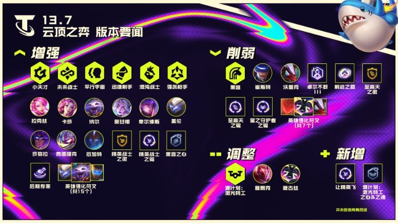 云顶之弈S8版本也上线一段时间了,不知道小伙伴都上到什么段位了,就在最近马上就要上线s8.5了官方也推出了许多内容,有小伙伴好奇云顶之弈为什么不能投降,那么下面就来告诉大家云顶之弈13.7弈子调整一览。