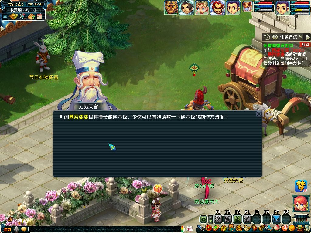 2、任务时限40分钟,可以在长安城(233,115)劳务天官处取消任务,取消任务3分钟内不能再次领取任务;