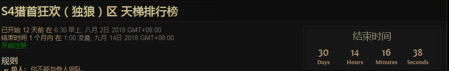 官网天梯排行榜的,估计还是要等到9月14日左右,才能开始新的赛季。在国服的市集没有什么大改动的时候我是不会回国服的,本身是一个逛街狂魔,国服市集逛的肝痛。