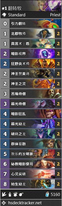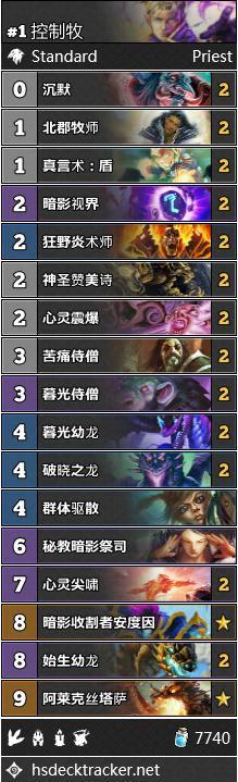 随着两套新卡组的热度逐渐褪去,牧师在天梯里所能倚仗的,还是前朝的控制(龙)体系。由于433龙和尖啸这两张神卡的存在,牧师对铺场进攻有很高的先天抗性,即使这个版本牧师控制体系没有获得加强,控制牧仍然能在偏快环境里有稳定的表现。