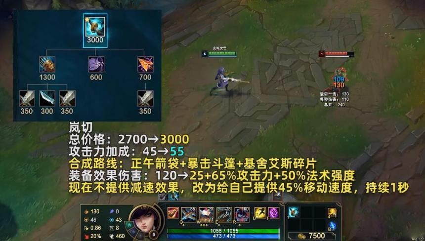 合成路线:正午箭袋+暴击斗篷+基舍艾斯碎片