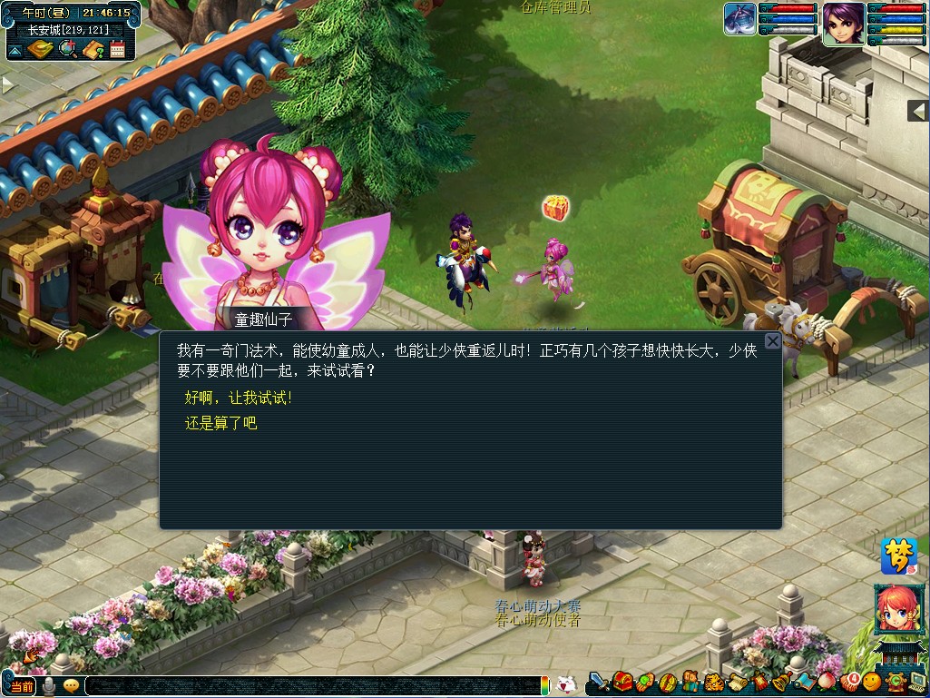 是不是孩子们都盼着长大,而大人们都怀念无忧无虑的童年呢?童趣仙子有一奇门法术,竟能使幼童成人,也能使少侠重返儿时!三个可爱的小伙伴将与少侠同行,共同体验互换身份的一天~