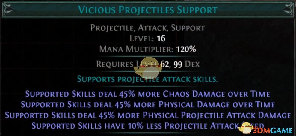 所以基本上所有的投射物型的流血/混沌伤都会想要用这个辅助宝石.
